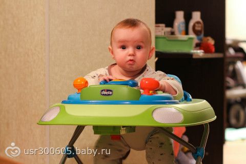 Мы тоже с 5.5 месяцев в ходунках) Согласна — отличная вещь!) У нас правда, первые несколько раз не хотел ходить, только прыгал в них и с игровой панелью возился, зато сейчас не поймаешь, как по квартире гоняет!))