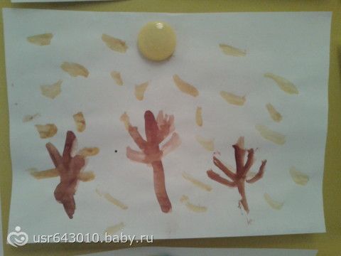 Несмотря на то, что у нас воспитательница одна на 20 ребят, она с ними всё успевает)Вот они рисовали листики на деревьях