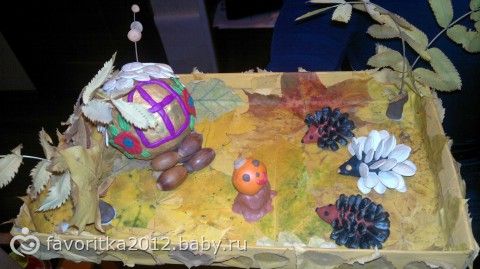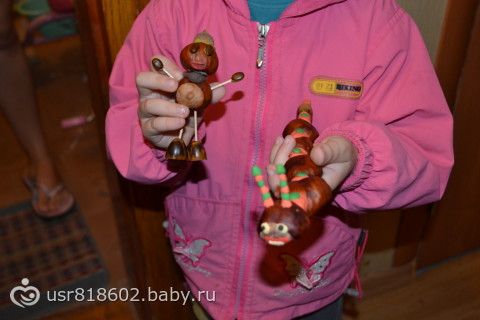 мы в прошлом году на скорую руку слепили из каштанов чудесных муровья и гусеничку (преметивно, но ребенок был счастлив))))