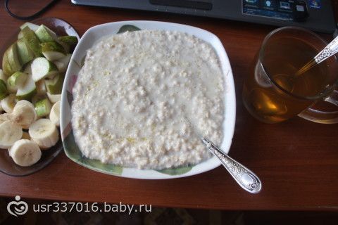 Завтрак: Каша овсяная на молоководе и с мёдом очень вкусно.груша, банан.