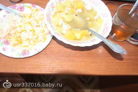 Обед: Суп куриный без картошки, там кабачок, репа, морковь на тёрке, лук и куриная грудка, очень диетический но тем не менее вкусный))Рис с овощами и доела квашеную капусту, совсем чуть чуть, по ккалориям на самом деле мало.