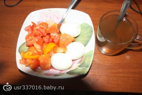 Ужин: Салат из помидоров и 3 варёных яйца, честно с желтками по ккал и жирам вышло нормально, мне очень уж хотело именно варёных яиц и с желтками)
