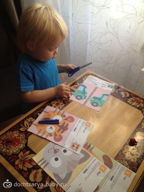 10:00 — начали занятия с Давидом по книге Кумон «давай вырезать». Сделали 4 задания. Ножницы в руках держал первый раз! Резать получается, даже ровно, но открывать их пока сложно. Последнее задание было про машины, переключились на них. Смотрели книгу «транспорт. Найди и покажи» — Давид в восторге! Ева уснула в качелях первый раз. Играли в приложение «транспорт» на телефоне. Катали машинки по парковке. Сложили пазл, из того, что вырезали.