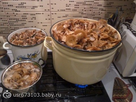 Привет девчули! Вчера у нас с мужем была годовщина свадьбы и хотелось конечно посидеть дома при свечах, но папа уговорил поехать в лес за грибами. О боги… где были мои мозги когда я соглашалась :-) дело даже не втом что с лялем весь день кататься и бегать по лесу, а сам распорядок дня и его завершение. День наш начался в 7 утра и закончился в 3 ночи. В лесу с сыном мы помогали папе собирать грибочки и сыну показали хрюшек, эмоции были так сильны что сына сам начал визжать :-) а вот и наш улов ( кастрюли на 3 л., 5 л., и 30 литров) это уже третий заход.