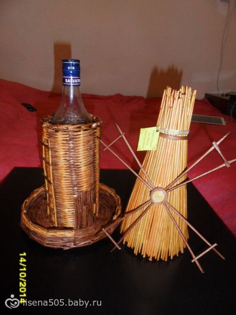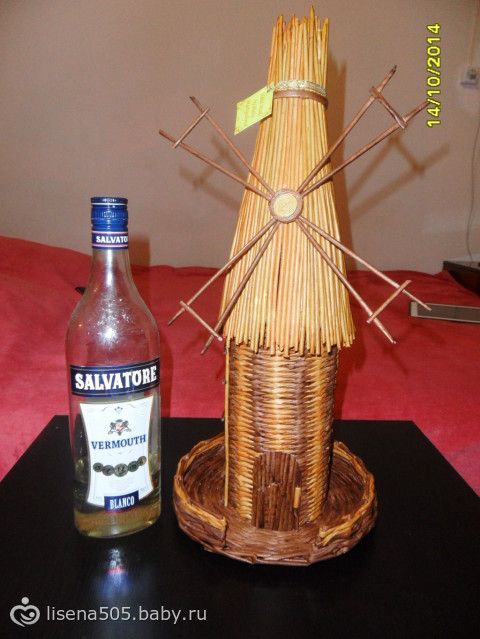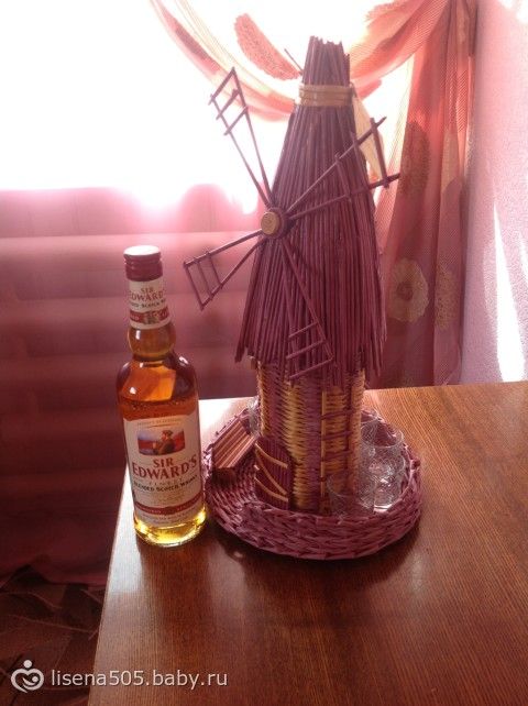 И пример Мельницы, которую плела папе на юбилей. На поддон ставила рюмочки.