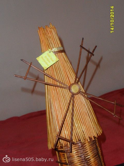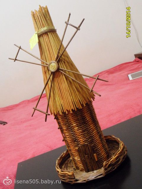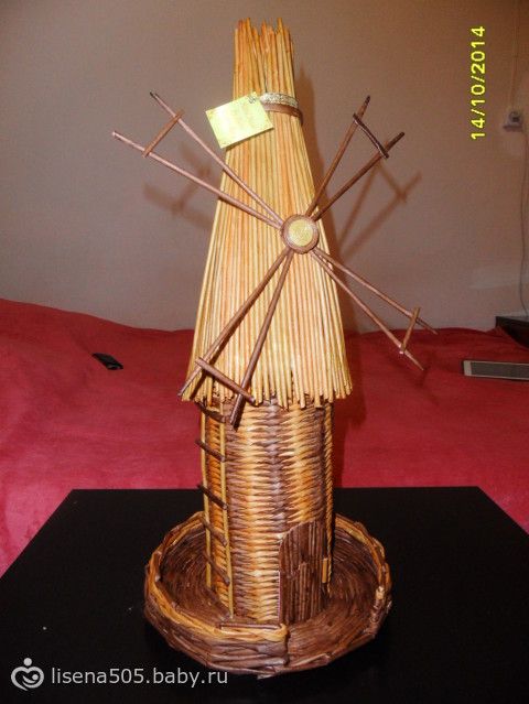 Плетение из бумажных трубочек. На данный момент в наличии есть одна Мельница — можно использовать как упаковку для спиртного. Отличный подарок. Плела такие на юбилей папе и свёкру.