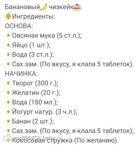 БАНАНОВЫЙ ЧИЗКЕЙК ( РЕЦЕПТ ПП ) 14 октября 2014 17:30 моё фото Комментарии Пожалуйста, будьте вежливы и доброжелательны к другим мамам и соблюдайте правила сообщества ПожаловатьсяСкопировать ссылку Татьяна Михаил11 лет Саратов А овсяную муку можно сделать из хлопьев овсяных? ПожаловатьсяСкопировать ссылку Иннчик Люси10 лет ↩ Татьяна можно)) ПожаловатьсяСкопировать ссылку Татьяна Михаил11 лет Саратов ↩ Иннчик Их просто в блендере смолоть? ПожаловатьсяСкопировать ссылку Иннчик Люси10 лет ↩ Татьяна Думаю да, сама не пробовала)) ПожаловатьсяСкопировать ссылку kipish Бат-Ям А я что-то от счастья не могу вспомнить как тут в закладки кидать, а то у меня на моих, общебраузерных уже стоолько(ПожаловатьсяСкопировать ссылку Иннчик Люси10 лет Под постом должен быть значок в закладки ПожаловатьсяСкопировать ссылку Виталина Гроцкая Гришуня9 лет Санкт-Петербург вау!!! я тоже на ПП, сохраню себе рецептик!!!!ПожаловатьсяСкопировать ссылку Иннчик Люси10 лет ПожаловатьсяСкопировать ссылку Белка Львенок10 лет Москва вкусняка наверное))))ПожаловатьсяСкопировать ссылку Иннчик Люси10 лет Ага Предыдущая статьяДИЕТИЧЕСКАЯ ПИЦЦА ДЛЯ УЖИНАСледующая статьяЦЕЛЬНОЗЕРНОВОЙ ХЛЕБАктуальные постыинструкция по применению коккулининструкция по применению колбиоцин