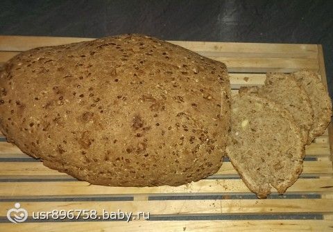 500 г цельнозерновой муки из полбы ½ ч.л. соли ½ пачки Дрожжей (сухие дрожжи). 300 г воды 4 ст.л. уксуса (яблочный уксус) 35 г подсолнечных семечек. 25 г кунжута 25 г льняного семени 100 г грецких орехов, колотые