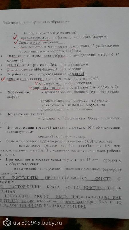 И еще справка с работы мужа что он не офоомлял отпуск по уходу за ребенком до 1.5 лет. Единоврееменное пособие за рождение ребенка мужу выплатят если он официально трудоустроен.