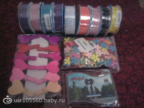 Вот такая красота мне пришла) Сфотала все вместе, было в 3 маленьких пакетиках) Декоративные скотчики, пуговки и прищепочки для моих рукоделок. Все такое хорошенькое! И магнитик)