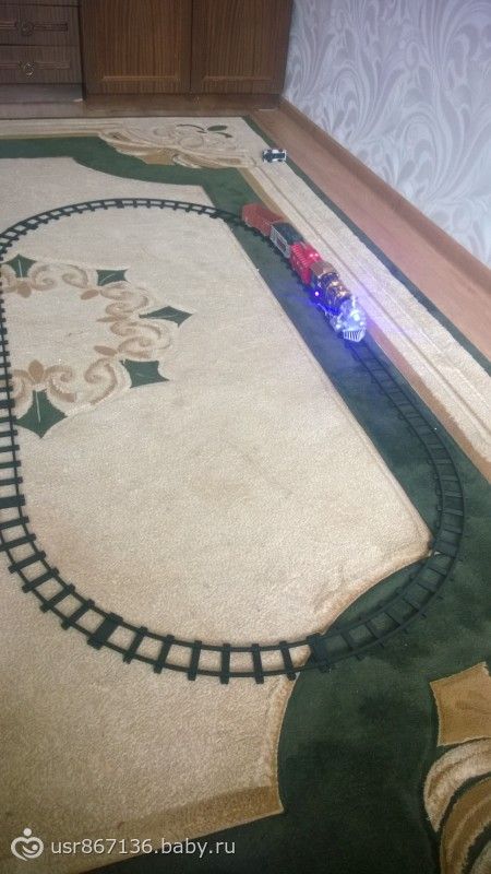поровоз на рельсах. Нашему сыну очччень нравится. Но так как он еще маленький то лучше на батарейках котрой. Со светящими фонарями