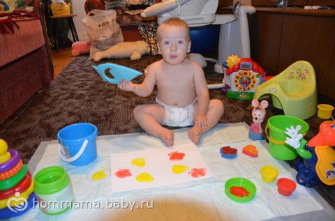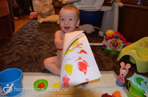 и как могли себя развлекали. Осваиваем, сначала вместе при помощи губок, потом пальцы в банку запустили…
