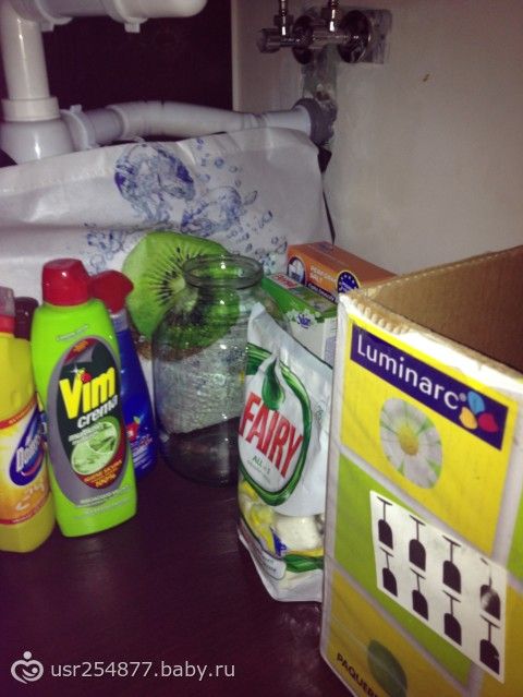 Как дополнительное задание(я просто знаю по себе, что просто не возможно это не сделать начищая раковину) попрошу вас убрать в шкафу под мойкой.Как давно вы туда заглядывали?.. честно говоря, я никогда раньше не замечала потёки на внутренней стороне дверки)))