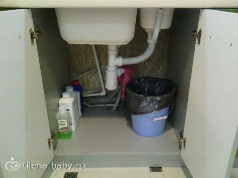 Честно признаюсь, что под раковину в шкаф я не заглянула((( чтобы туда залезть нужно дверку снимать. а я не умею( вот так кудряво гарнитур у нас стоит)))