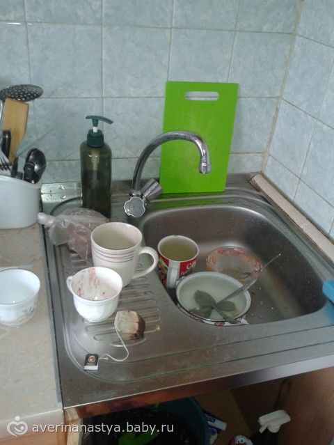 Теория понятна, раковина — сияет, в большинстве случаев она меня встречает утром сияющей, кроме тех случаев, когда муж обещал помыть посуду вечером, а потом забыл, или когда манюня долго и тяжело укладывается спать — я засыпаю с ней.