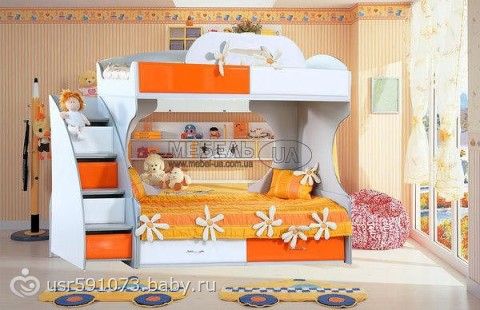 я вот думаю можно и двухярусную взять, даже если у детей будут разные комнаты, лишнее спальное место не помешает)) вдруг бабушка на ночь останется или ещё кто из гостей)у нас тоже была типа такой, как на твоём фото, только не диван, а просто два спальных места) а у подруги была немного другая мне она нравилась больше, но она места займёт больше.Я вот предпочла бы типа таких что то: