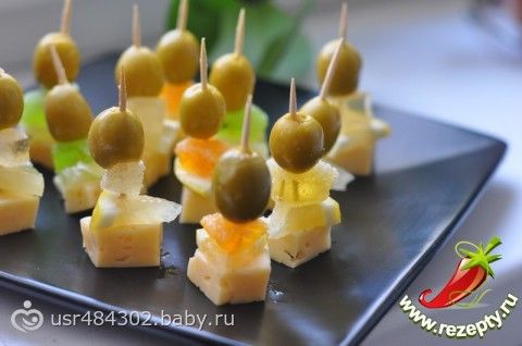 Лимон-мармелад-сыр-оливка (порядок на фото виден)