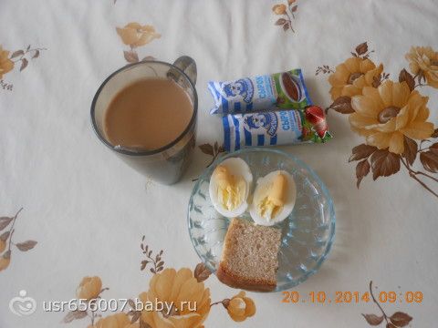 кофе с молоком, 2 сырка. 1 яйцо, хлеб не ела