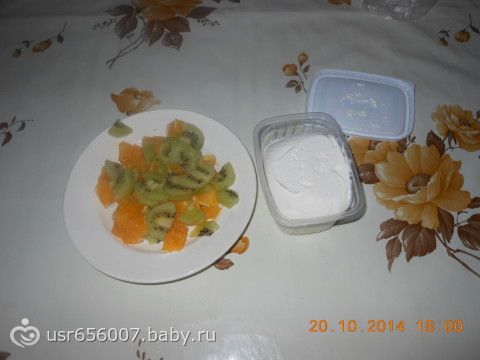 пол апельсина, 1 мелкая киви, 150 гр творога