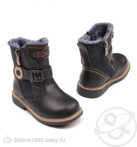 Купили мы обувку PrincePard. На первый взгляд теплые. Верх кожаный, внутри мех натуральный. С комбинезоном тоже, вроде, сочетается. На днях обещают морозы, вот и проверим как Сане они понравятся.
