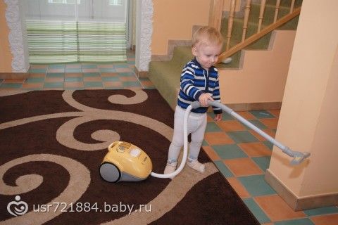 Помощник: Тут хлебом не корми дай маме помочь!)) Самое любимое это конечно пылесосить. Купила ему специально детский, нет только мамин и чтобы шумел на всё мощность. Только стоит мне его взять, ор стоит забирает, пылесосим по очереди!) Так же если вытираю пыль, ему тоже нужна тряпка, готовлю кушать обязательно нужно смотреть процесс приготовления и тд.