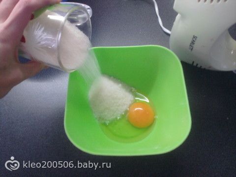 Яйцо взбить с сахаром. Масло/маргарин растопить.