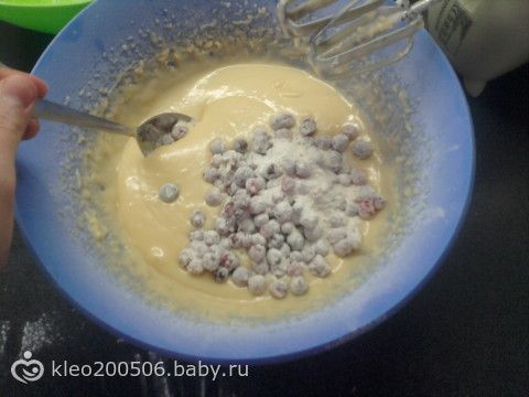 Клюкву присыпать мукой, и аккуратно, не повреждая ягод перемешать. Ягоду лучше использовать замороженную, сочнее получается, и ягода не лопается.