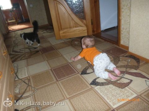 Эх, а дальше, дальше все по накатанной, сел Тимоша в 7 с копейкой месяцев, ушла убираться, оставила ребенка играть, возвращаюсь, а он сидитподумала что сама посадила(к слову если его на тот момент садила, то он сидел), в общем вернула его в исходное положение, лежа) и решила подглядеть, смотрю, а он жопку свою назад дерет и садится)эх, счастья то было, такому вроде несложному способу передвижения) Ну и пополз он почти что сразу, дня через 4, после того как сел)эх, покоя мне не было, потому что изучению подвергся весь дом, а он немаленький