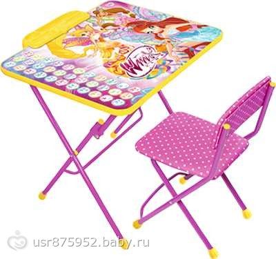По поводу столика со стулом у дочки был типа такого только вроде картинка другая была. Потом папа с мамой купили в ИКЕИ деревянный стол с двумя стульчиками. Спустя время деревянный уехал на дачу, а цветной даже и не помню куда делся. Сыну хотели купить но в итоге так и не купили то одно то другое, сидит за комстолом на высоком кресле и занимается.