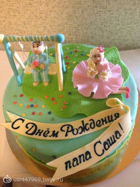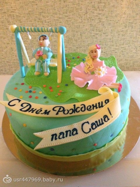 Моя подруга заказала своему мужу на день рождения: смысл торта в том чтобы его дети поздравили. У них их двое: белокурая девочка принцесса ( 6 лет), и маленький сынок ( 4 мес). Долго думала над дизайном и вот что получилось. Как вам?