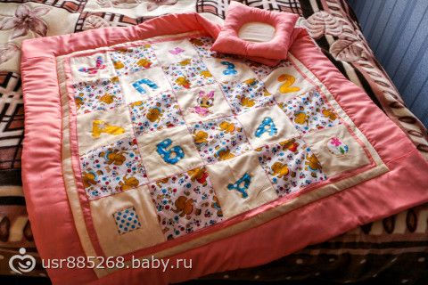 Как и обещала показываю результат моей работы последний(правда помогла мама и с подушкой). Когда шить садилась, эта моя Маська не давала мне ничего делать, поэтому мама и помогла, так как я из последних сил делала и спина болела и животик каменел, но все же хотелось доделать. Правда еще хотела успеть игрушки сшить, но не успела..