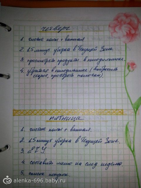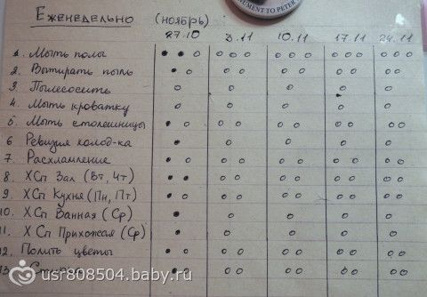 Вот появился у меня вопрос: составляя базовый план еженедельной уборки, обнаружила, что есть дела, которые нужно выполнять 2 раза в неделю, а есть те, которые можно и раз в месяц делать. так вот, если с первыми все понятно, я включила их в свой план, а как быть с тем что нужно делать раз в месяц? у нас будет план ежемесячной уборки? спасибо!