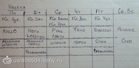 Расписание на неделю.А вот и я со своим отчетом. Т.к. вчера отрубилась на пару с доченькой))