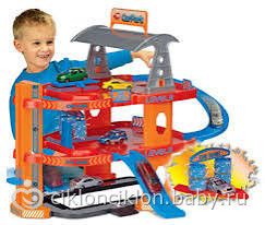Как раз сейчас актуально. Мой очень любит играть. Покупали старшему — тогда еще такого шикарного выбора небыло....5-уровневая, внизу типа улицы с фонарями, бордюрами и деревцами (все съемное), в середине лифт, и куча маленьких машинок в комплекте,… а сбоку еще винтовой съезд....20 у.е. стоила