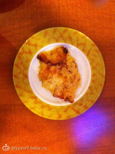 Ужин: Свинина под шубой (постная свинина, чуть сметанки, лук, помидорка, сыр)
