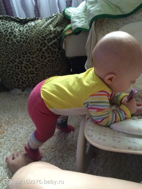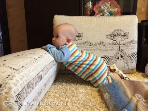И так, что мы умеем.Умеем не много, но всё же. Ползаем на пузе, очень быстро по всей квартире. Покоя маме нету, уже и палец прищемили и гладильную доску перевернул. Глаз да глаз за ним. Стоит на четвереньках, но делает один шажок и валится. Стоит на коленях, любит держаться за опору, залазить на вершины, болтать любит. Бабам, дадада, оба оба ну и еще различные звуки для меня не понятные, но болтает постоянно.Внимание очень любит, один долго не играет, надо что бы с ним кто то был. Ныть любит дело не по делу, особенно если видит что я рядом. Не сидит… И не хочет и не пытается. Массажист наш сказал что у него еще даже опоры нету и нету понятие даже как это сидеть. Уже месяца полтора как мы толком не спим, то кризисы, то зубы. Десна набухшие. Бугры видно и чувствуются под десной, прям вот вот чуть чуть осталось и все никак не вылезут. Очень надеюсь что с появлением зубов и ночи станут спокойными и в своей кроватке. А то нам с папой неудобно спать по краям постели, а по середине звезда.Кушаем мы кашки на завтрак, данька их очень любит. В обед овощи, супчик вот варила первый раз, ему понравилось. Съел всю тарелку. И на полдник не много фруктового пюре. Еще иногда ест фрукты в ниблере, банан и яблоко. Взяла талон на молочную кухню.начнем вводить творожок и биолакт. Вот впринципе и все наши новости. Вес 7100 рост не мерили ну примерно 64-66 см.