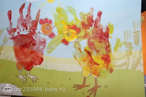а красками чуть позже стали. сначала пальчиковыми. потом уже кисточками