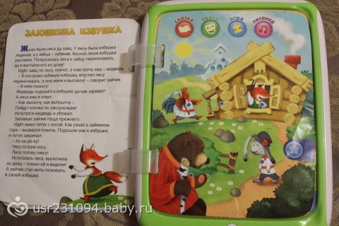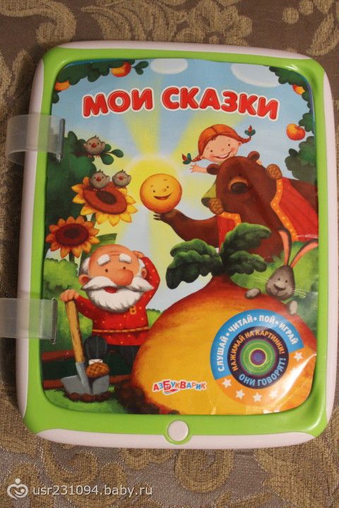 9. вот такая книжка с кнопочками-картинками в МЕТРО брала. малому очень нравится. сам нажимает, слушает сказки. песни, есть загадки, он угадывает. Вообще советую очень деткам до 3х лет. стоит она 600 с чем-то. там несколько сказок. малой с ней год не расставался. сейчас временно ее спрятала. что бы соскучился )) каждое животное нажимается, говорит и издает звуки. можно театр делать. по разному включаются режимы.