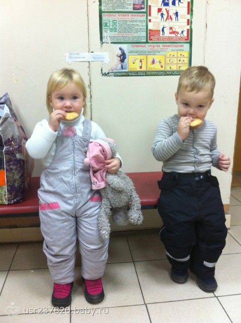 Ходили в поликлинику за справкой в сад, подружка Лера тоже с больничного выписывались, пока Маша, мама Леры, стояла в очереди в регистратуру, я стояла с детьми в сторонке. Сидит женщина с ребенком, кушают печенье, эти две голодины — Яся и Лера встали и стоят в рот заглядывают, отгоняю их от тети, они все равно пытаются вернуться, так и угостили их, в итоге, печеньем))) Бедные, никогда не видевшие печенек и конфеток дети)))