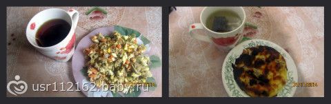 ОБЕД: салатик(говядина,2 яйца, соленый огурец,1 вареная морковь,1ч.л. майонез системный ), чай. УЖИН: запеканка творожная(творог, белок 1 яйца, яблоко, чернослив) зеленый чай!!