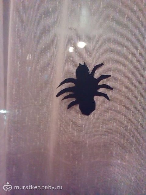 Пока ждали мужа, с сыном вырезали паучка из картона-повесили на занавеску)