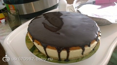 далее Берем белки добавляем 1 ст сахара и взбиваем, в белую пену, пытаемся как больше чтоб она была густой ( по максимуму), в это время на водяной бане ставим на газ желатин) когда желатин растопится, Берем его прям горячим, одной рукой продолжаем сбивать белки другой вливаем в белки горячий желатин, перемешиваем все это тщательно миксером и выливаем в массу с желтками и маслом, все миксером перемешиваем, и выливаем в форму(желательно разъемную), на дне которой уже должен лежать корж, вылили начинку сверху положили еще один корж и в холодильник, обычно я на ночь ставлю, тк в ночь делаю, утром встаю вытаскиваю его из формы, если форма не разъемная надо будет аккуратно ножиком вырезать, делаем глазурь и заливаем, украшаем как хотим… и все… Девочки это кажется что муторно на самом деле фигня!!! проверено!!!!!!!!!!!!!!!!!