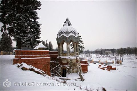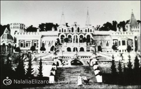 Как выглядела мавританская беседка раньше, прекрасно видно на левой части старинной фотографии. Сейчас, она, к сожалению, в ужасающем состоянии...