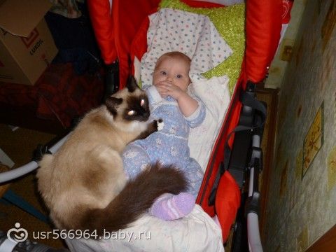 у меня есть моя любимица, а также является нянькой моей красотки. Кэрри это моя кошка она очень заботливо относилась и относится до сих пор к дочке. Раньше когда мы не могли малышку успокоить, она готова была свою титьку ей дать и кусала всех у кого был на руках ребенок в этот момент. все даже её боялись и старались успокоить по быстрее чтобы не получить. Теперь дочка бегает за ней, хотя кошки и не нравится что её мучают, но она или терпит или убегает на время, но спать всё равно приходит к нам.