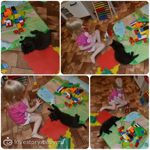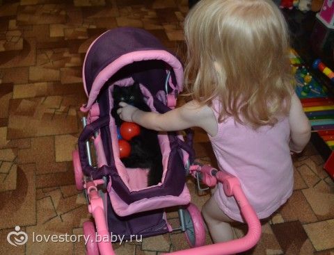 А котенка взяли вот, совсем недавно, дочери почти 2 года и 5 мес. Тоже ладят, и играют вместе) Иногда конечно разнимаю их, нов общем и целом все спокойно)0 Крольчиха появление кошки тоже перенесла спокойно)У НАС КОТИКИ БЫЛИ ДО РОЖДЕНИЯ СЫНА ПРИНЯЛИ КРОХУ ОТЛИЧНО