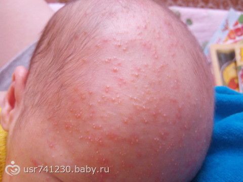Такая же беда была. Врач так толком и не сказала что это было. Сыпью был покрыт лобик и вся голова. Купала в череде и протирала отваром череды. И два раза в день обрабатывала раствором хлорофиллипта спиртового. На третий день всё прошло.