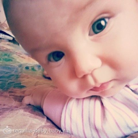 у нас каки-то непонятные звуки, агу, ливень слюней и кулак а то и 2 сразу во рту) не хочет лежать на животе)