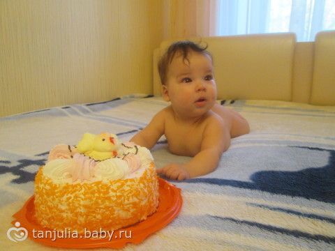 Ну и фото. Это сегодня утром, с именинным тортиком (купила в Еврике, называется «детский», вкусный, рекомендую)