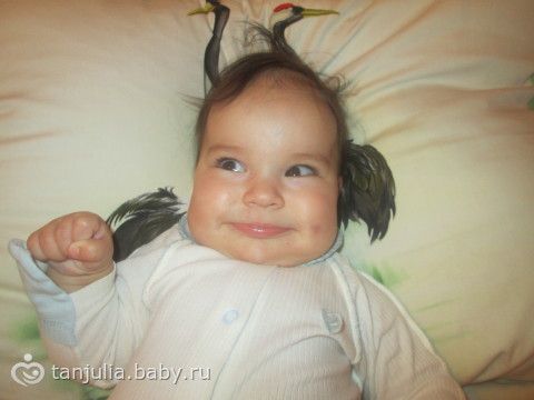 Поздравляю вас с 4 месяцами))))на 3-ей фотке у Анютки как будто причёска))А это рисунок на наволочке