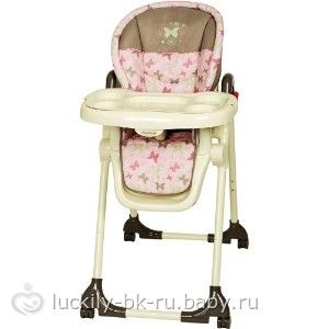 Они есть разных цветов — бежевый, оранжевый. Новый стоит от 160-200 евро. Мы купили б/у в идеальном состоянии за 110. Я довольна. Хорошее качество. легко складывать. Очень приятная кожа. Несколько положений сидения. Раскладывается до полулежачего состояния, если ребенок вдруг уснул))) Несколько положений высоты.Сзади есть кармашек для игрушек. Съемный столик. В будущем можно там рисовать, например. Короче, я довольна.